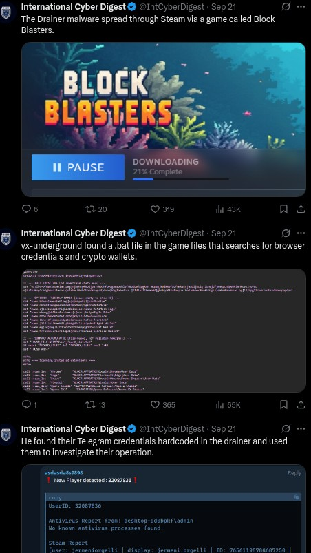 🚨 vx-underground reverse-engineered the malware that stole $32k donated to Rastaland for his cancer fight. They uncovered the entire infrastructure, operations, the people that fell victim, and people behind it. pic.twitter.com/qjDJuc39ne— International Cyber Digest (@IntCyberDigest) September 21, 2025